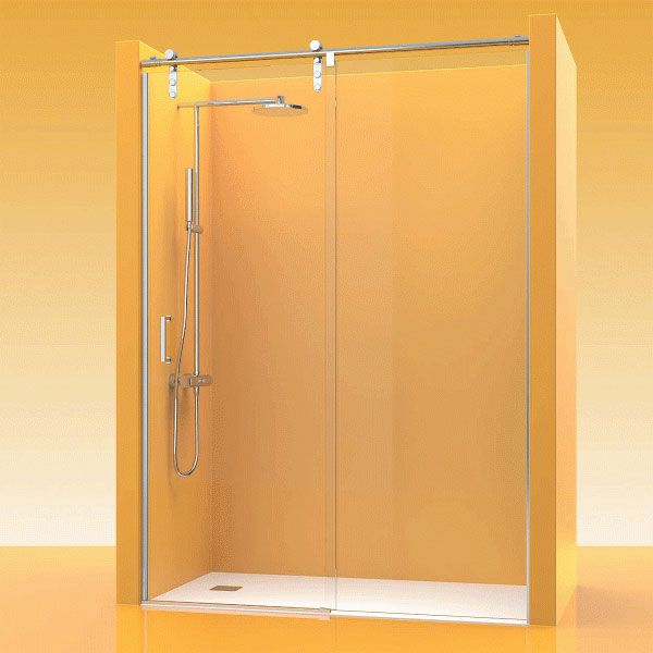 Una mampara para ducha con la mínima expresión de perfilería y un diseño elegante y vanguardista donde el cristal adquiere el máximo protagonismo dejando una imagen visual de máxima ligereza y amplitud.