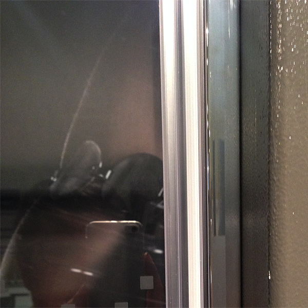 - mediante el mayor o menor cruce entre el cristal de la puerta y el fijo, con lo que los cristales cruzarán más o menos entre ellos en función de la medida exacta que tengas. En general, cuanto más cerca esté tu medida de la medida máxima, menos cruzarán los cristales.